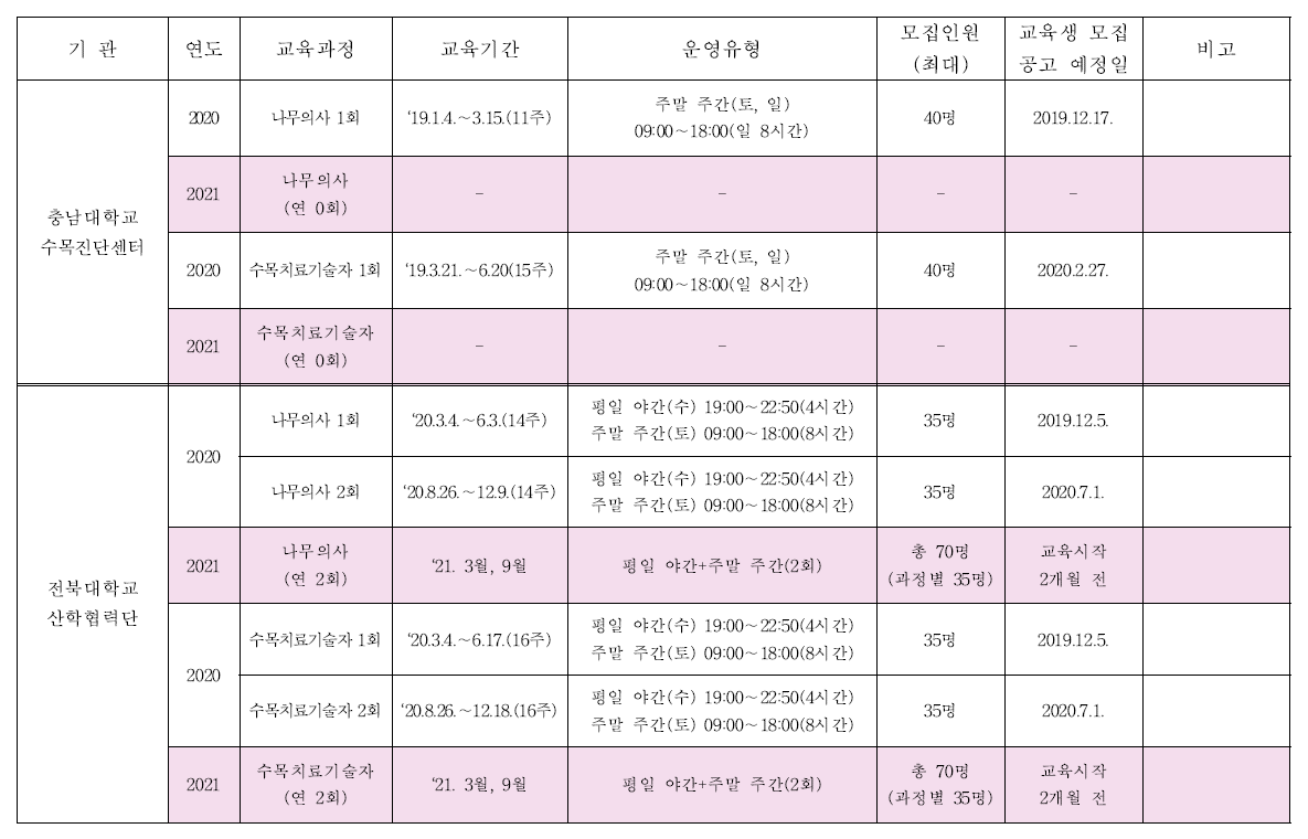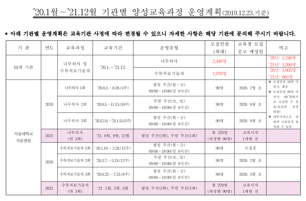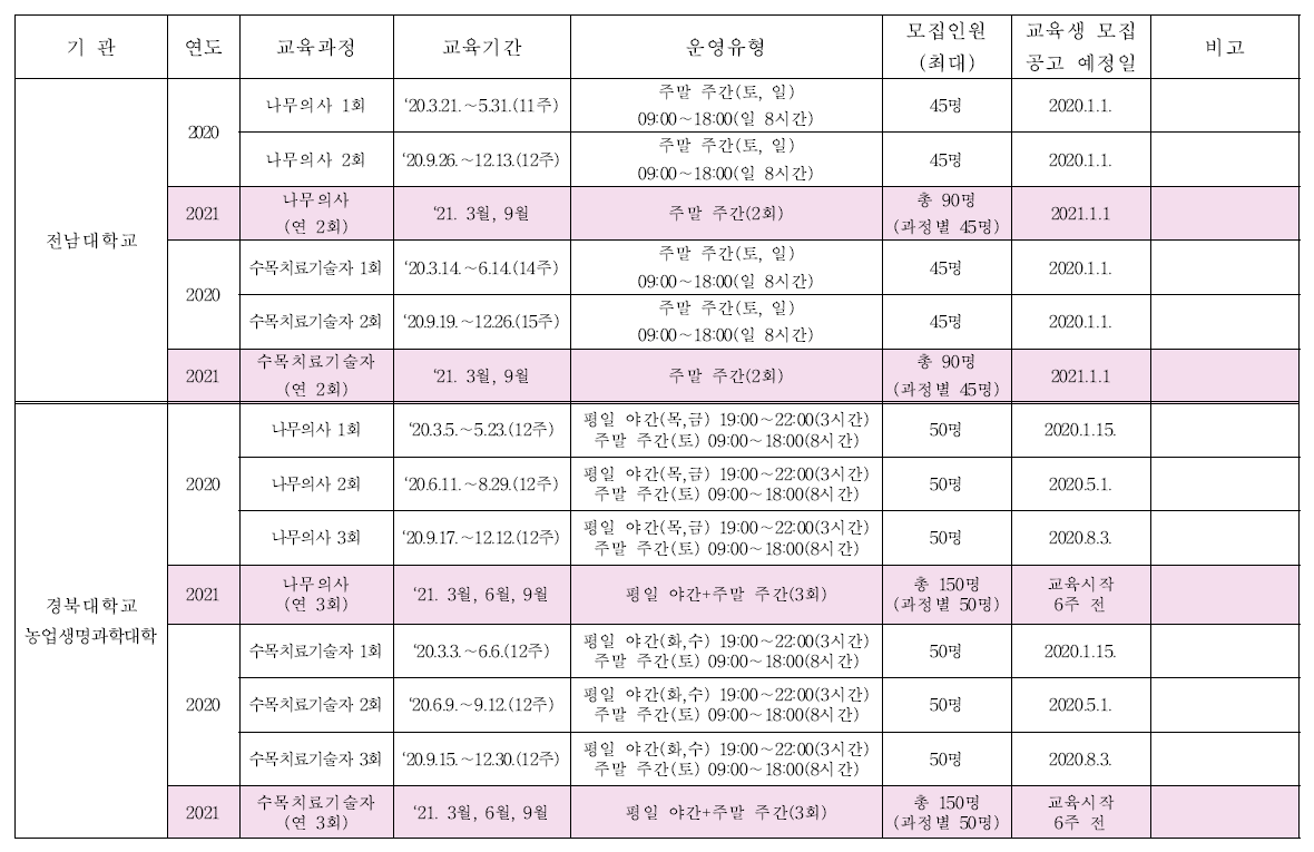 붙임+2020_2021년+기관별+나무의사+등+양성기관+운영계획(안)_게시(최종).pdf