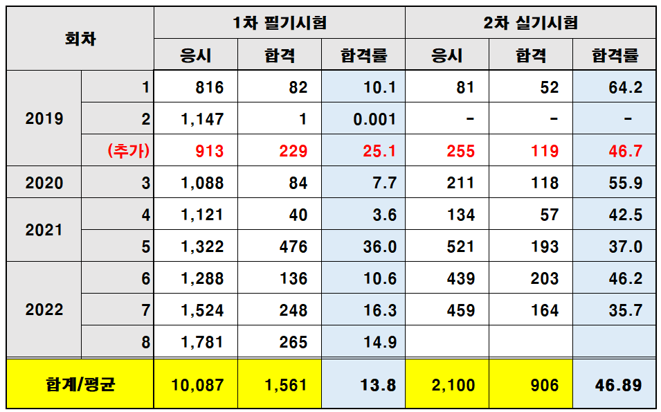 - 2차 실기 평균 합격률 46.9%