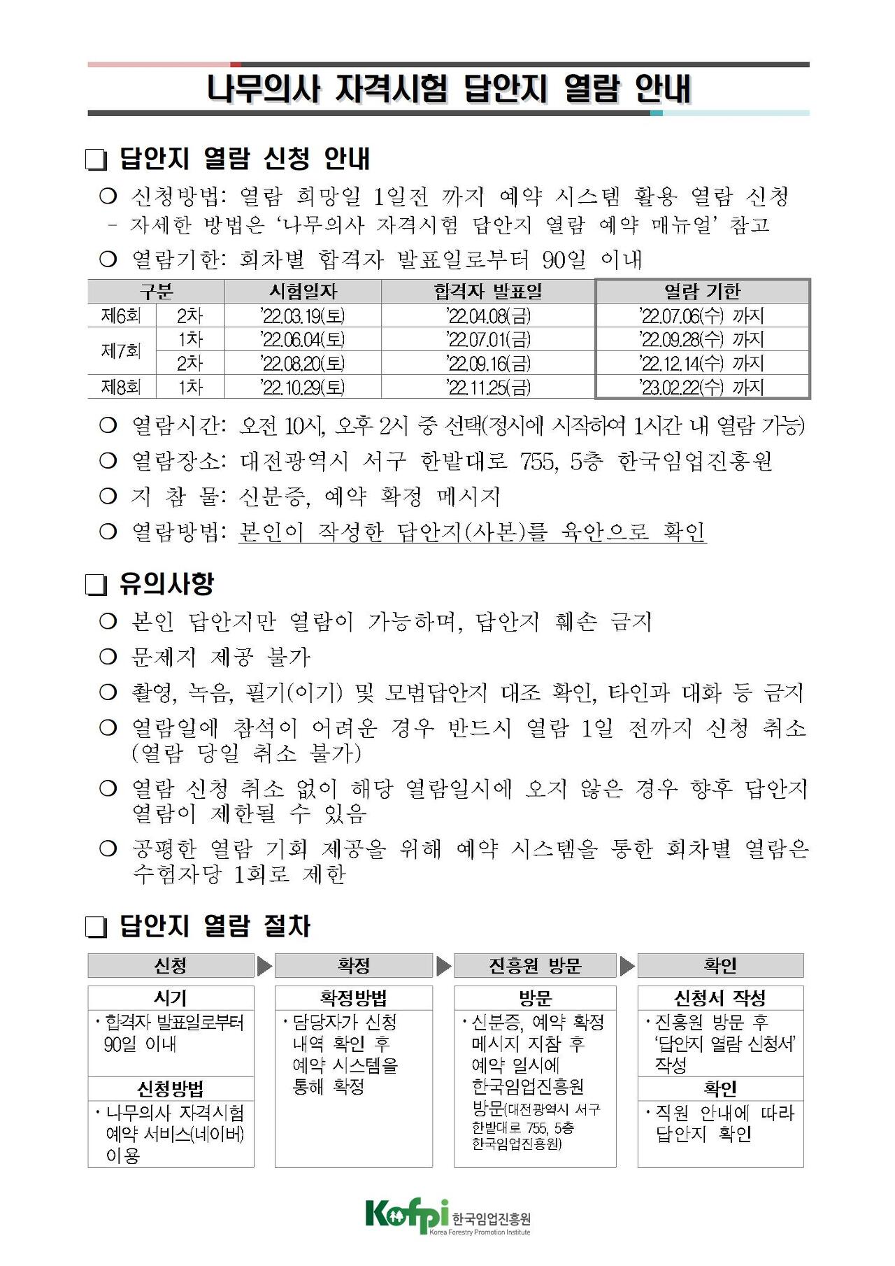 | 제8회 나무의사 자격시험 2차 수험자 안내사항 (0) | 2023.01.09 |