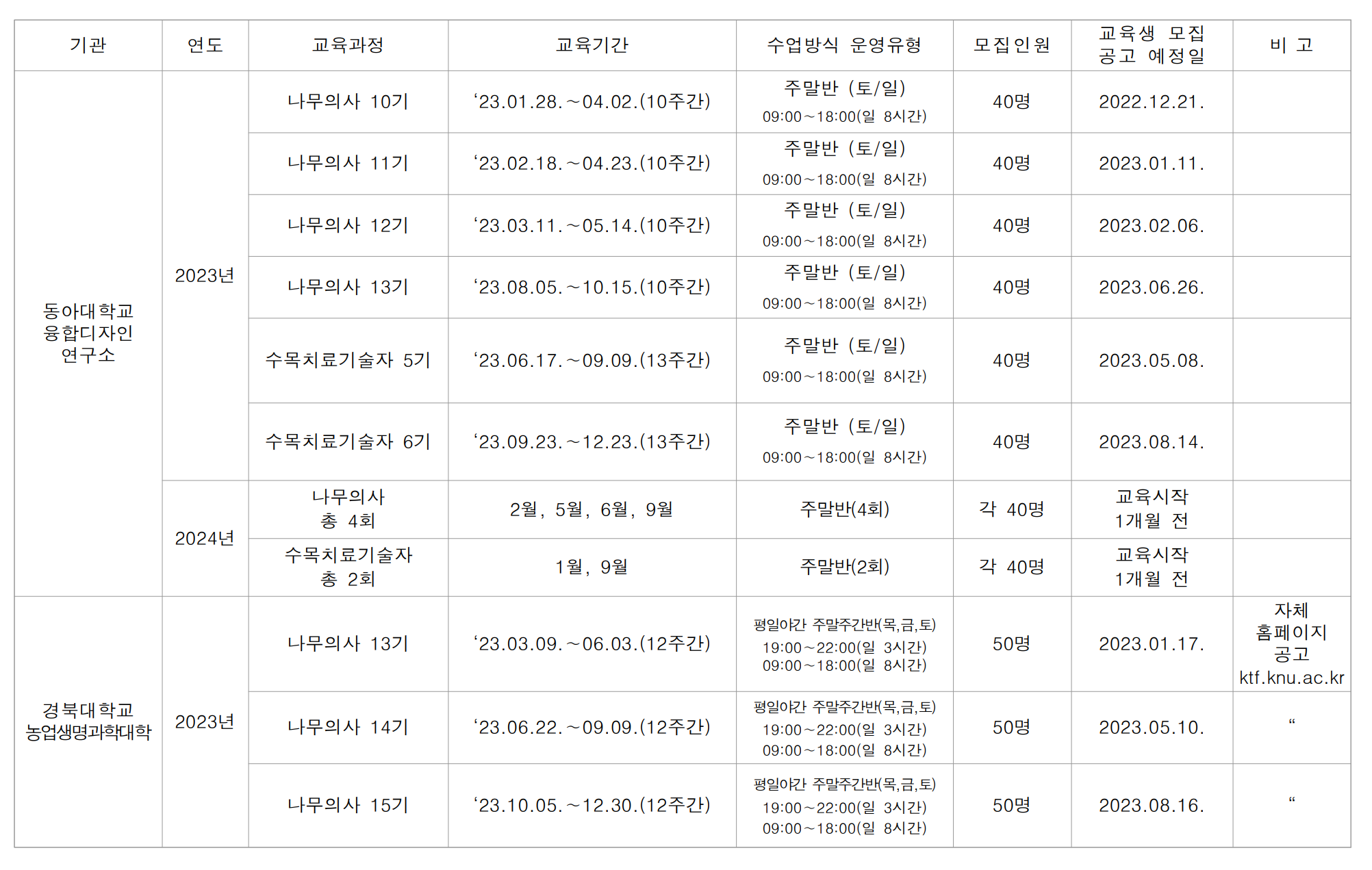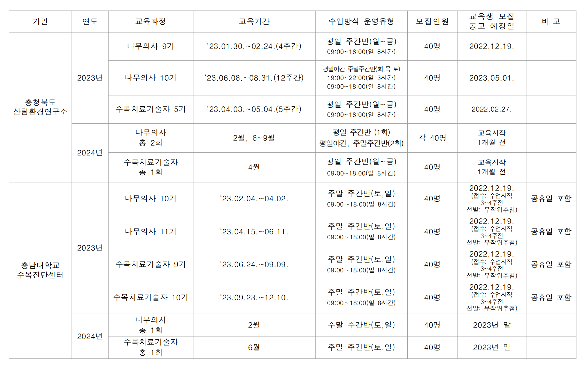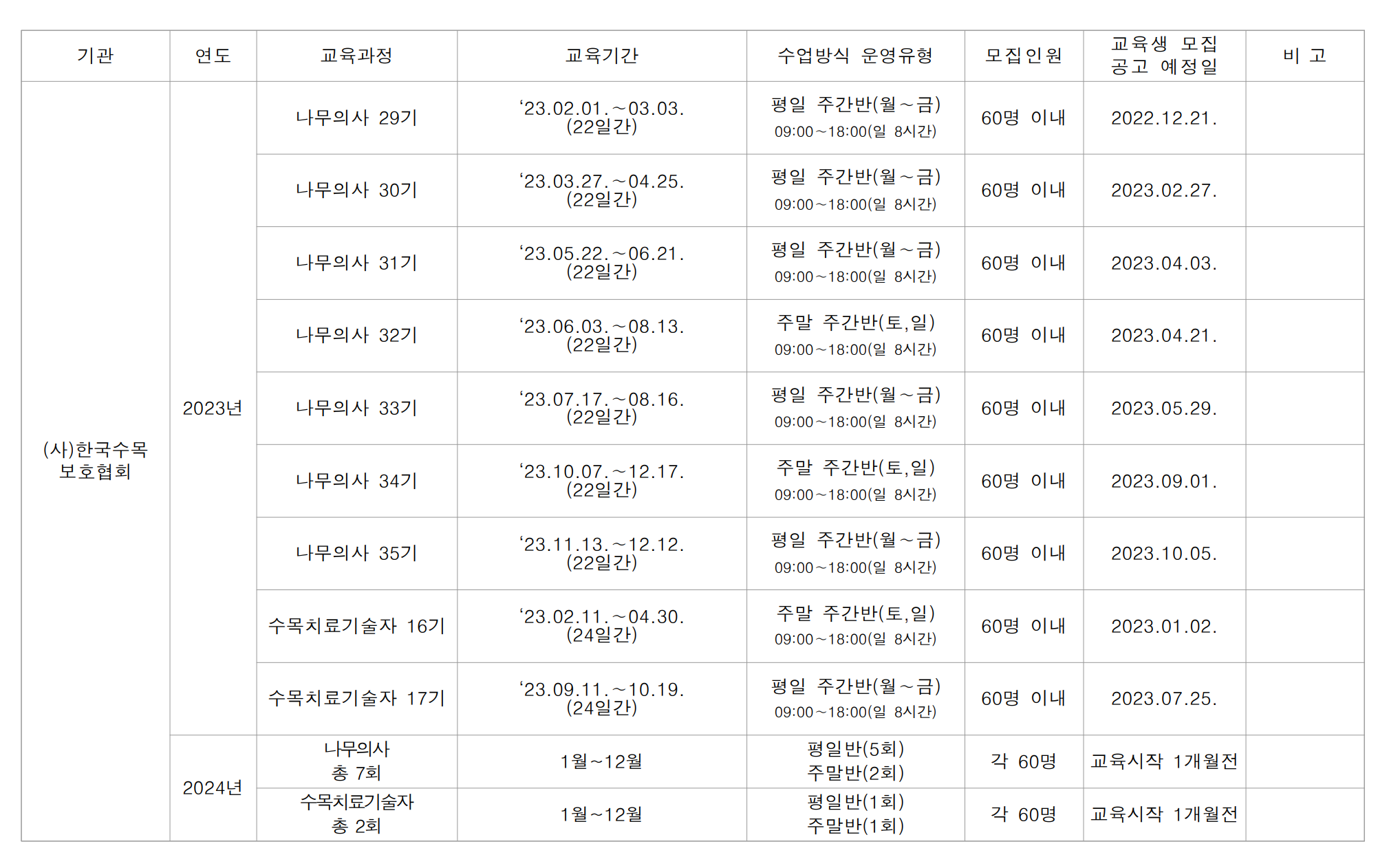| 「2024년 제2기 나무의사 양성과정」 교육생 모집 공고 (0) | 2024.05.07 |