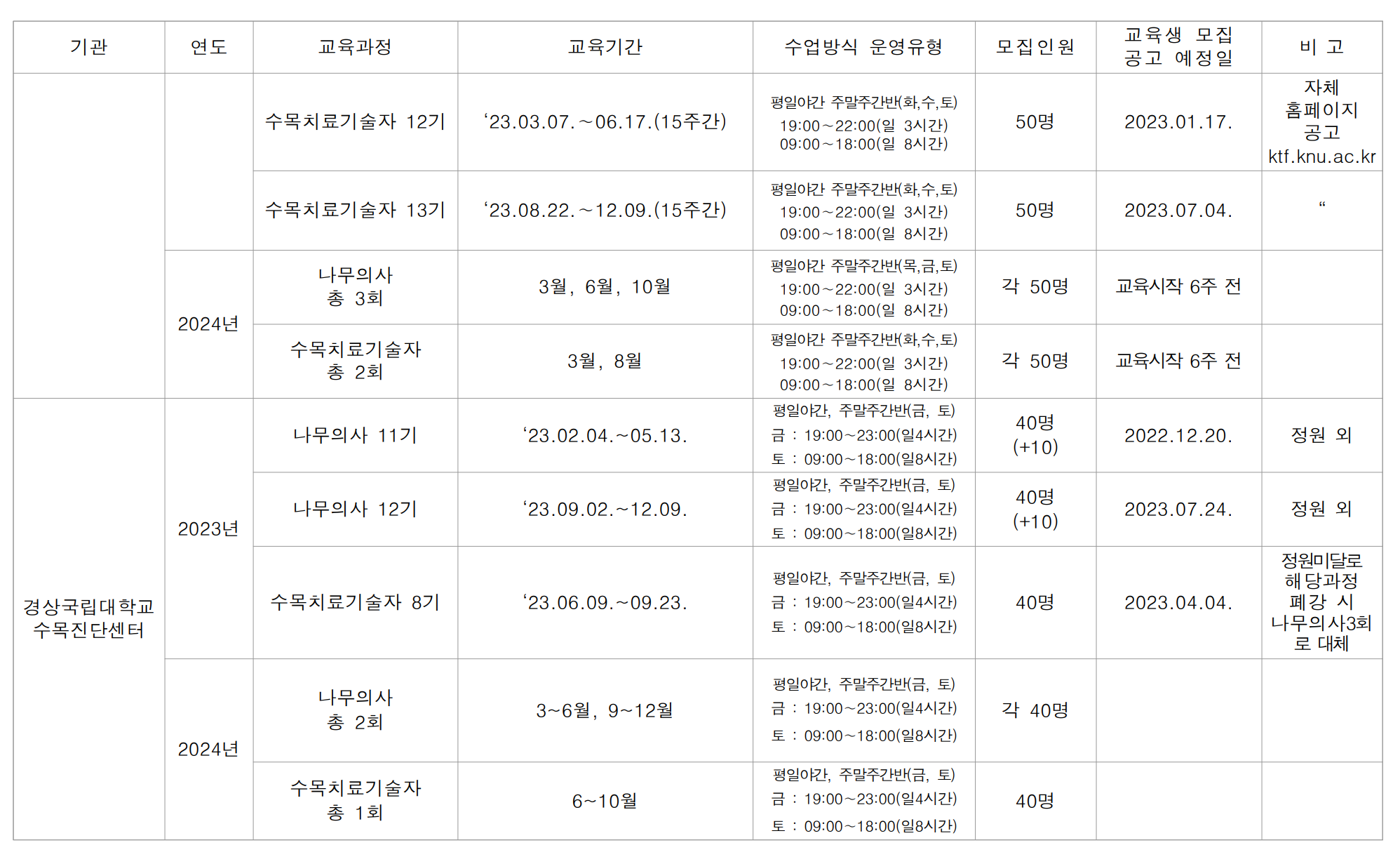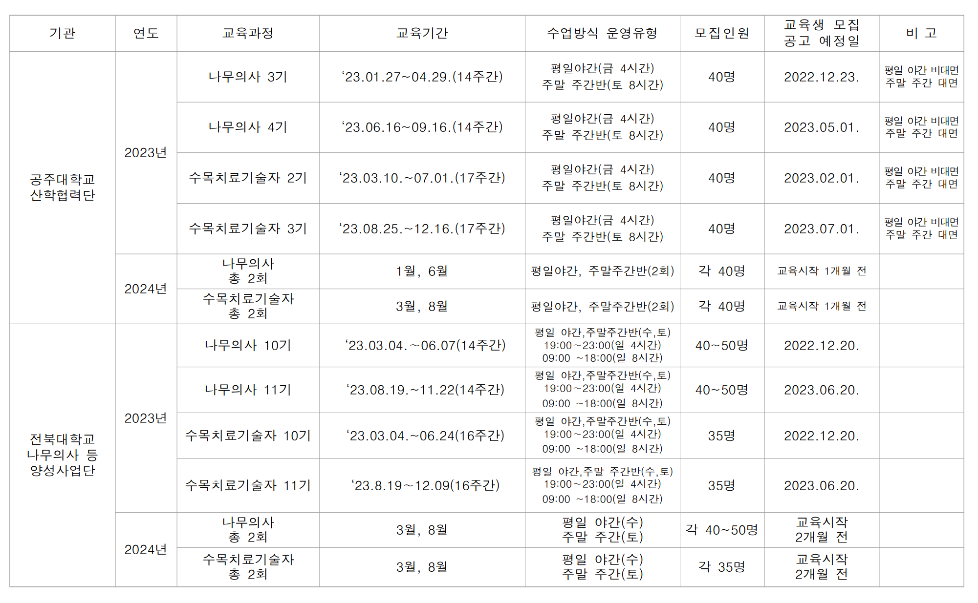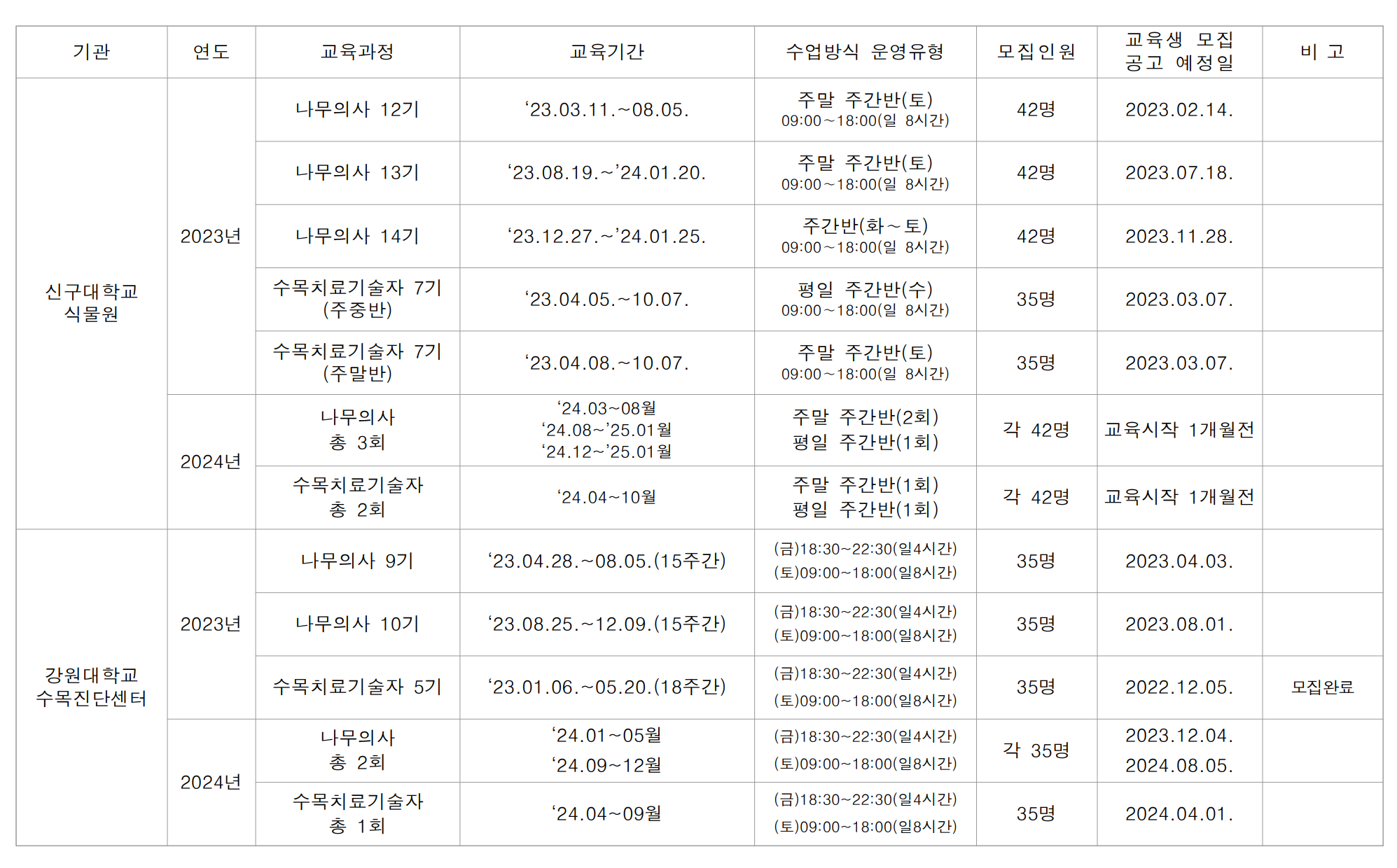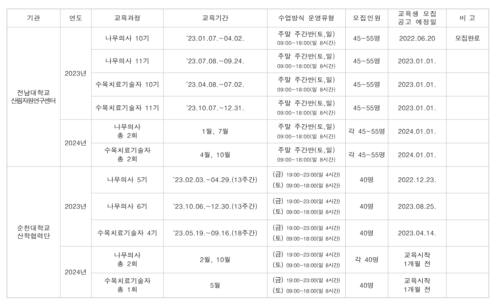 | 「2024년 제2기 나무의사 양성과정」 교육생 모집 공고 (0) | 2024.05.07 |